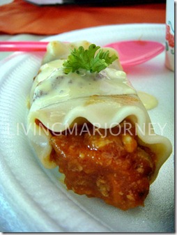 A simple but yummy lasagna rolls topped with bechamel sauce, hot mini chicken pie and mini fish burger, prepared by Ms. Neneth Tiongkiao, a food aficionado who won several cooking contests.